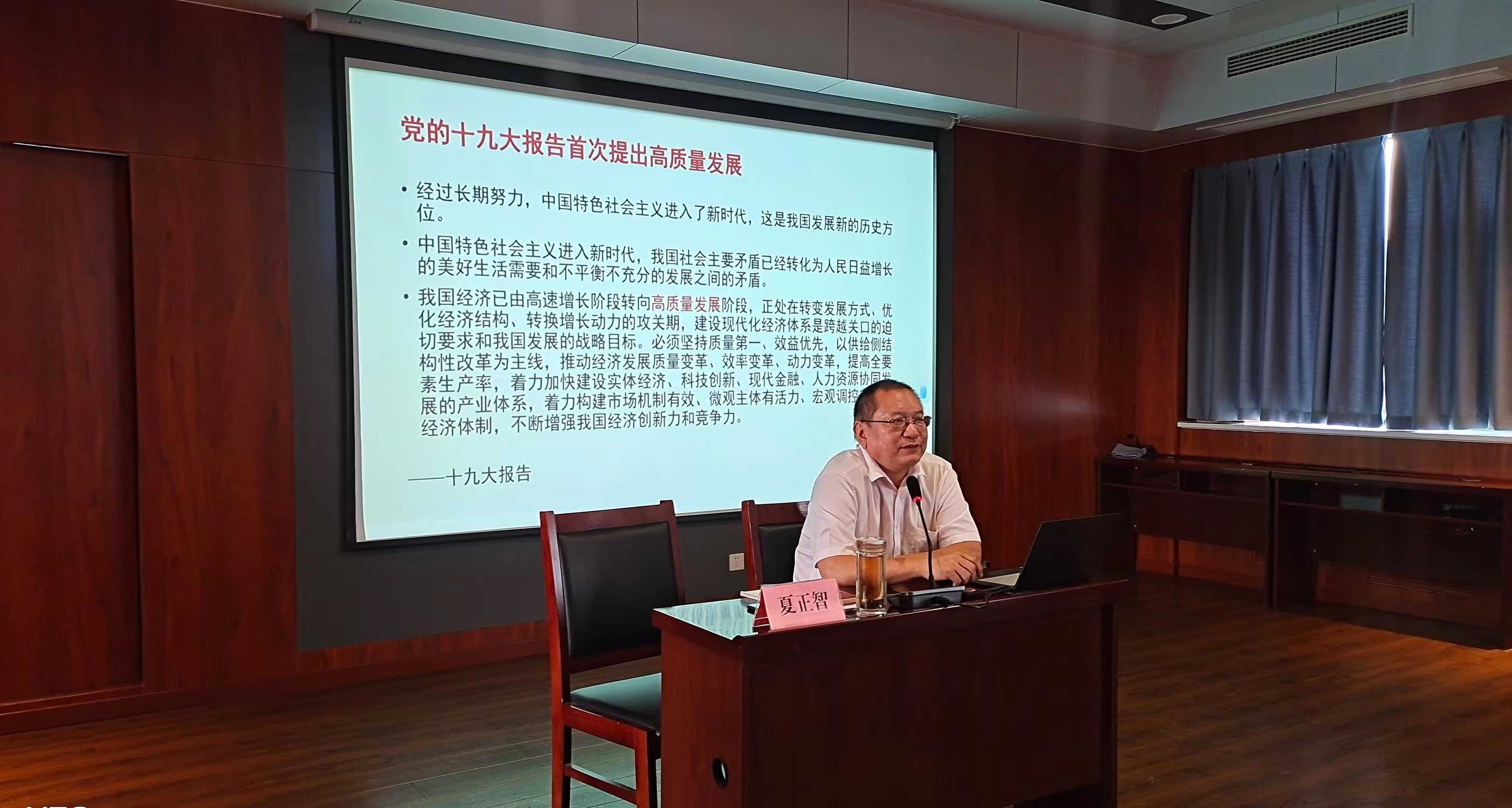 為深入學(xué)習(xí)宣傳貫徹習(xí)近平新時(shí)代中國特色社會(huì)主義思想,全面落實(shí)“學(xué)思想、強(qiáng)黨性、重實(shí)踐、建新功”主題教育要求,進(jìn)一步強(qiáng)化“提標(biāo)提速提能力、敢闖敢干敢爭先”的工作標(biāo)準(zhǔn),市國資委于近日組織開展“五進(jìn)”送黨課活動(dòng),市委黨校國資委分校選派優(yōu)秀骨干教師在市國資系統(tǒng)送課“進(jìn)企業(yè)、進(jìn)項(xiàng)目”。9月1日,市財(cái)金集團(tuán)特邀中共聊城市委黨校經(jīng)濟(jì)管理教研室夏正智教授講授黨課《加快構(gòu)建新發(fā)展格局 著力推動(dòng)高質(zhì)量發(fā)展》,市財(cái)金集團(tuán)中層及以上人員、子公司負(fù)責(zé)人、各支部全體黨員、黨外人士共計(jì)80余人參加學(xué)習(xí)。