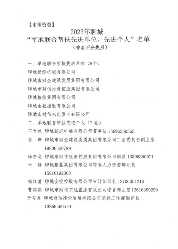 聊城市財金建設發(fā)展集團有限公司被授予“軍地聯(lián)合幫扶先進單位”榮譽稱號,工會副主席孫峰同志被評為“軍地聯(lián)合幫扶先進個人”。