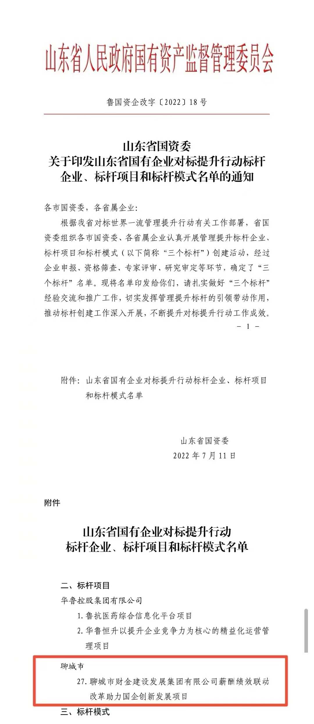 7月26日,記者從市國資委了解到,省國資委于近日公布了山東省國有企業(yè)對標提升行動標桿企業(yè)、標桿項目和標桿模式名單,“聊城市財金建設發(fā)展集團有限公司薪酬績效聯(lián)動改革助力國企創(chuàng)新發(fā)展項目”成功入選標桿項目名單。